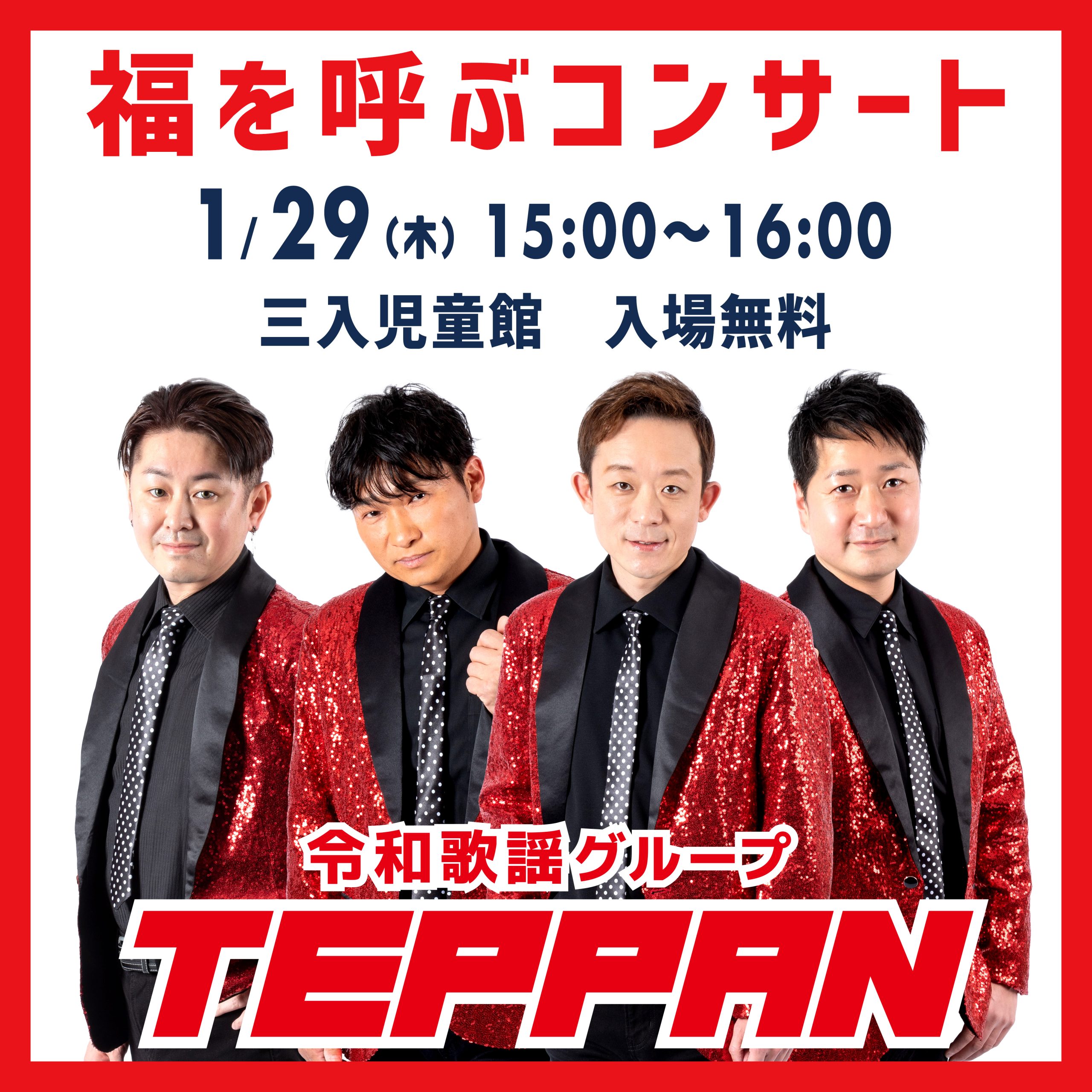 三入児童館で開催される『福を呼ぶコンサート』に令和歌謡グループTEPPANライブ出演!