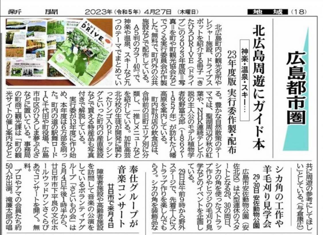 月山翔雲が観光大使を務めさせて頂いている北広島町のドライブガイド『きたひろDRIVE』2023年度版が中国新聞に掲載されました!